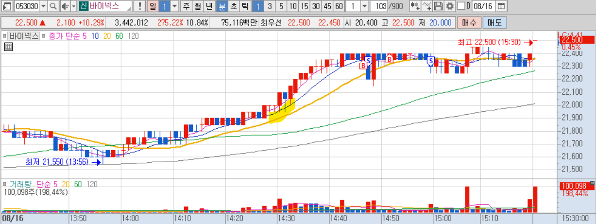 - 20일선에 부근에서 매수했지만, 60일선에서 반등한 특징을 확인하고 조금더 기다렸다가 60일선을 이탈하였다가 손절
